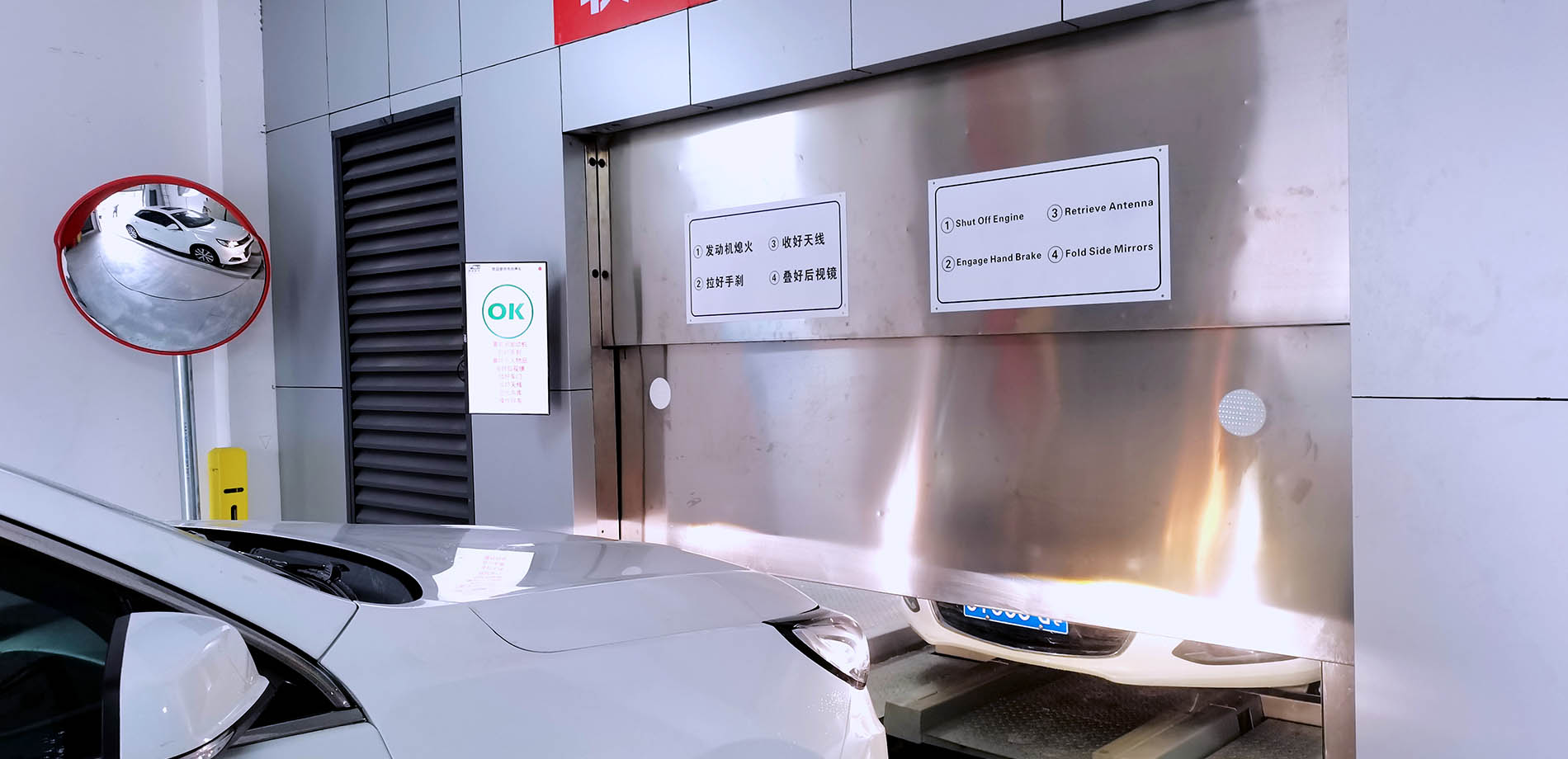 本項目為地上+地下類型,采用新型垂直升降類車庫——大轎廂,采用梳齒式智能搬運器,共設計6個出入口。存取車采用最先進的人臉識別,快速高效。