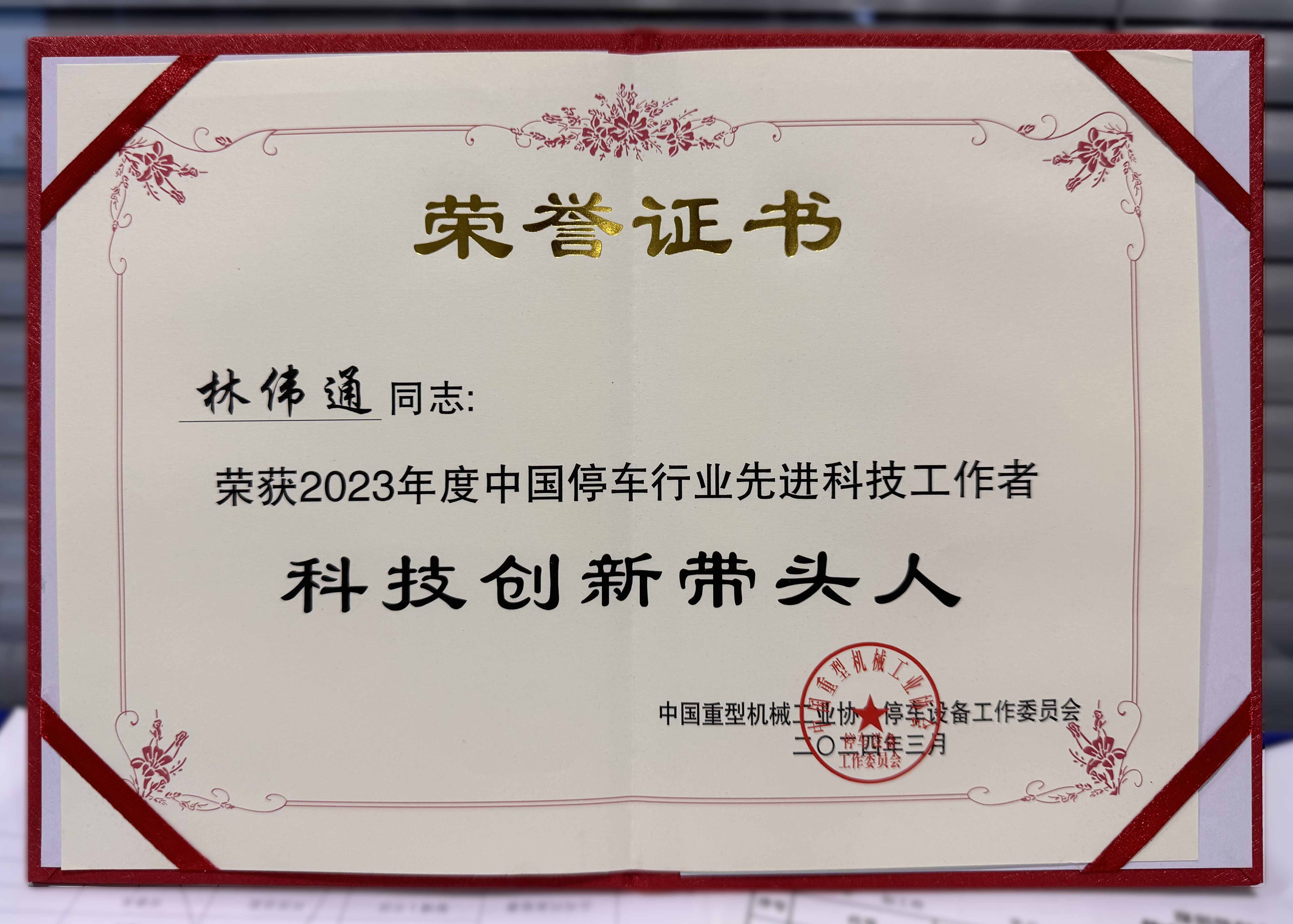 深圳偉創總經理林偉通、副總經理郭勇金分別獲得住房和城鄉建設部科技計劃項目科技創新帶頭人稱號及2023年度中國停車行業先進科技工作者榮譽稱號。此外,在國家市場監督管理總局特種設備安全監察局研究的《開展機械式停車設備行業發展狀況調研和監管對策優化》項目中兩人均榮獲突出貢獻獎。